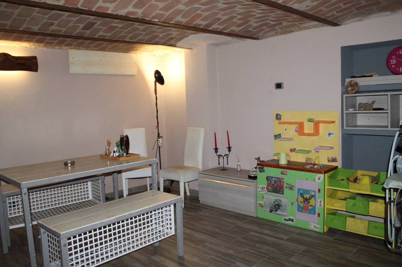 SANTENA: in piccolo complesso comodo al centro del paese, SGimmobiliare propone in vendita villetta a schiera ristrutturata nel 2009 così composta: piano rialzato ingresso su grande salone con cucina abitabile a vista, bagno e ripostiglio; tramite la comoda scala interna accediamo al piano superiore, dove troviamo due camere, lo studio e il secondo bagno. Al piano seminterrato è presente la tavernetta con soffitto a volte con mattoni a vista e la cantina. La casa gode di una piccola area esterna ad uso esclusivo, perfetta per godersi momenti all'aperto in totale privacy. Completa la proprietà l'autorimessa doppia. Sono presenti i pannelli fotovoltaici e il riscaldamento alimentati da una stufa/caldaia a pellets. Ottima!